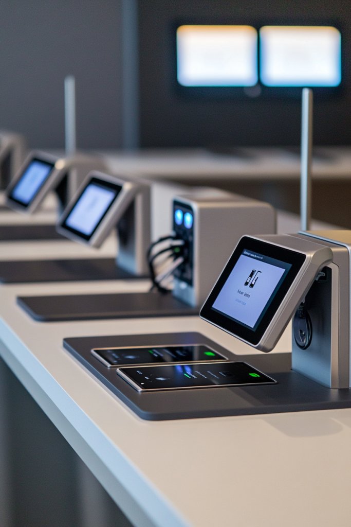 15. Futuristic Tech Hub with Charging Stations and Smart Devices