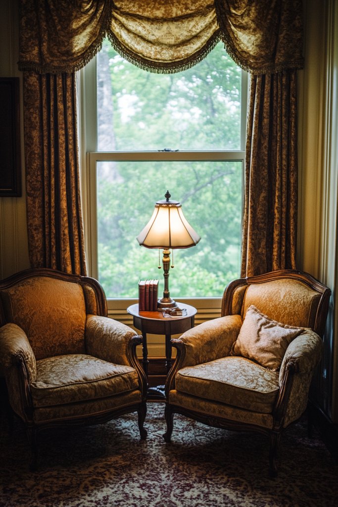 5. Vintage-inspired Reading Lounge with Cozy Seating