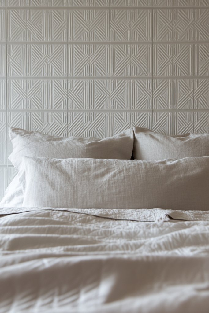 Want a quick, affordable way to add pattern and texture to your bedroom wall? Adhesive wall panels or peel-and-stick tiles are perfect for creating a statement headboard or accent wall. They’re simple to install, removable, and come in countless designs.