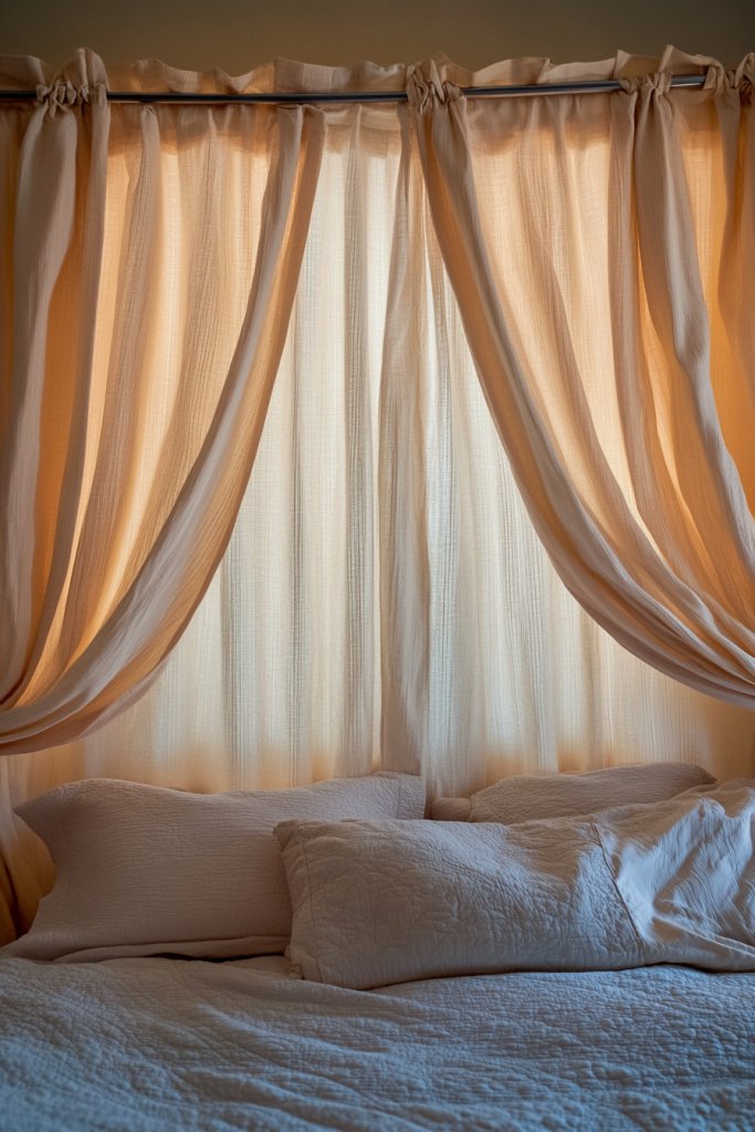 16. Create a DIY Headboard with a Tension Rod and Curtains