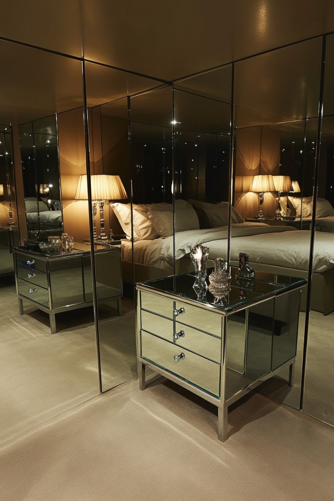 10. Elegant Mirrored Wardrobes and Nightstands