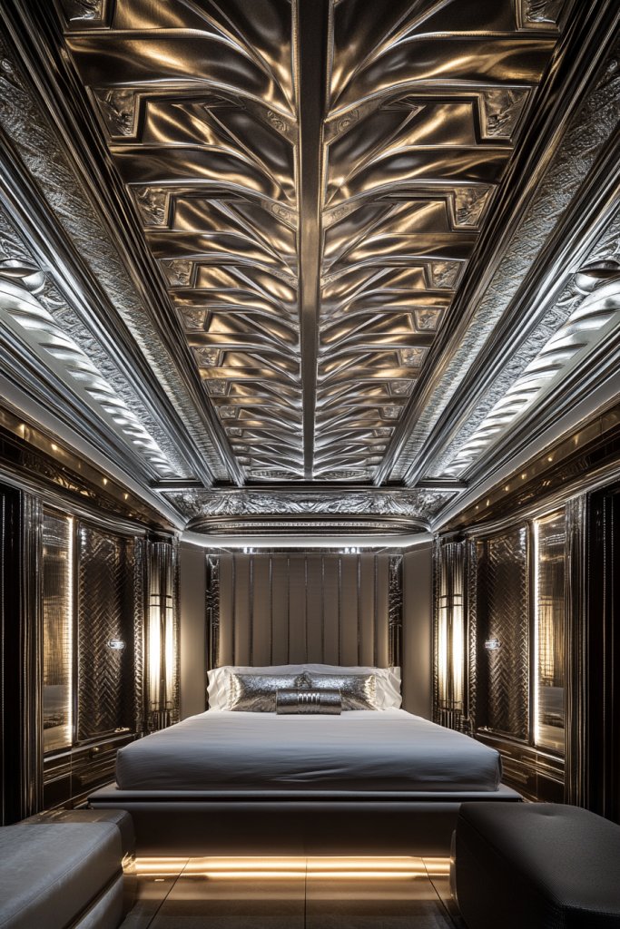 Ever feel like your bedroom lacks that wow factor? The ceiling often gets overlooked, but a metallic finish can transform it into a stunning focal point. It’s a bold move that adds height and grandeur without overwhelming the space.