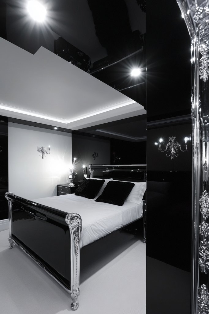 A black and white color scheme with chrome accents exudes confidence and style. It’s a versatile look that can lean minimal or luxe depending on your choices. Ready to make a bold statement?