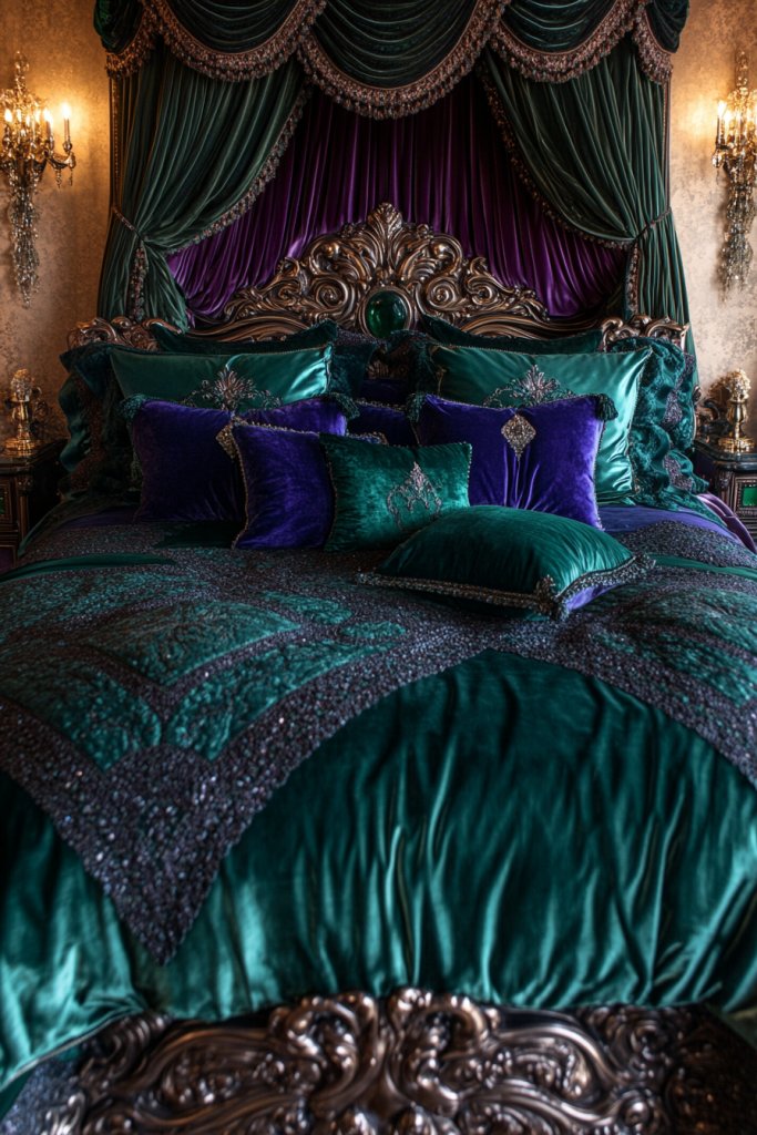 9. Rich Jewel-Tone Bedding and Accessories