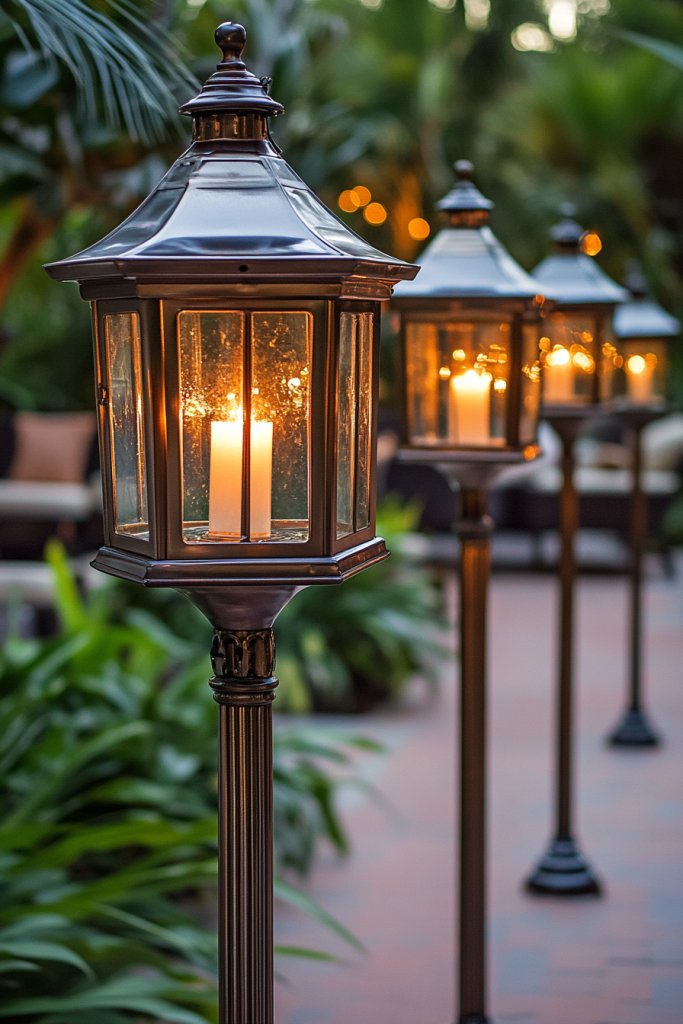 12. Vintage-Style Lanterns on Stands for Classic Charm