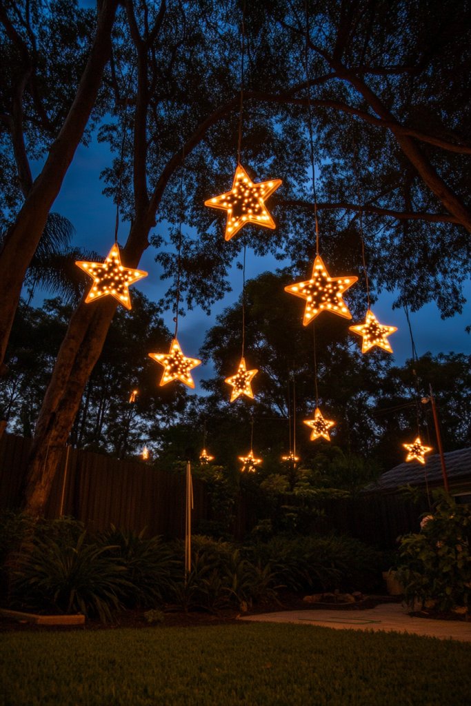 Stringing star-shaped lights creates an instant magical atmosphere that’s both charming and fun. They’re an easy way to elevate your outdoor decor and impress guests. With a few simple hooks and some outdoor-rated string lights, your backyard becomes a celestial escape. Embrace the night sky and enjoy your personal universe of light.