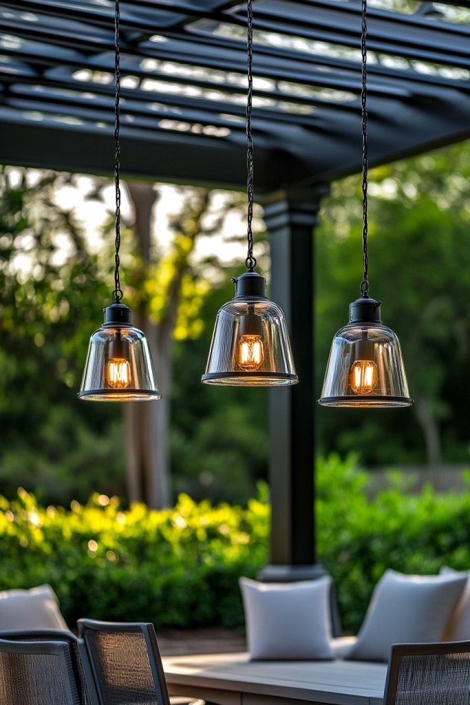 Select weatherproof pendant fixtures rated for outdoor use. Install sturdy mounting hardware on beams or pergola supports. Connect electrical wiring safely, following local codes, and conceal wiring within beams or conduits. Hang the fixtures at a height that provides ample light without obstructing views or movement. Use dimmable bulbs or smart controls for flexibility. Regularly clean fixtures and check wiring for safety.