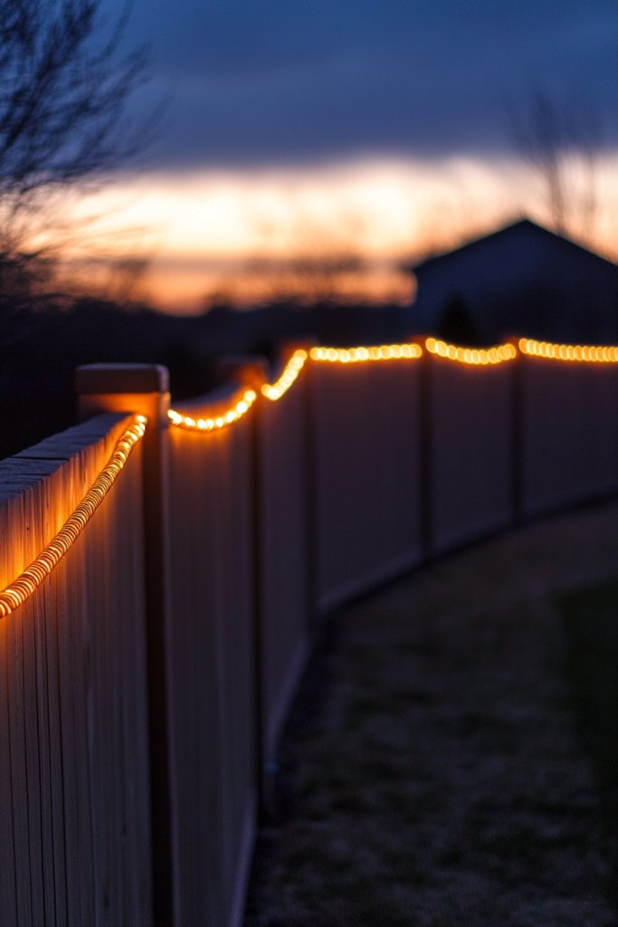 20. Rope Lights Along Fence Tops for Subtle Definition
