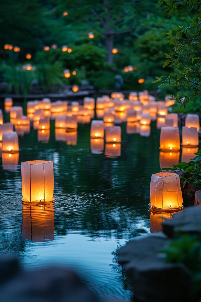 3. Floating Lanterns on the Pool or Pond for a Dreamy Effect