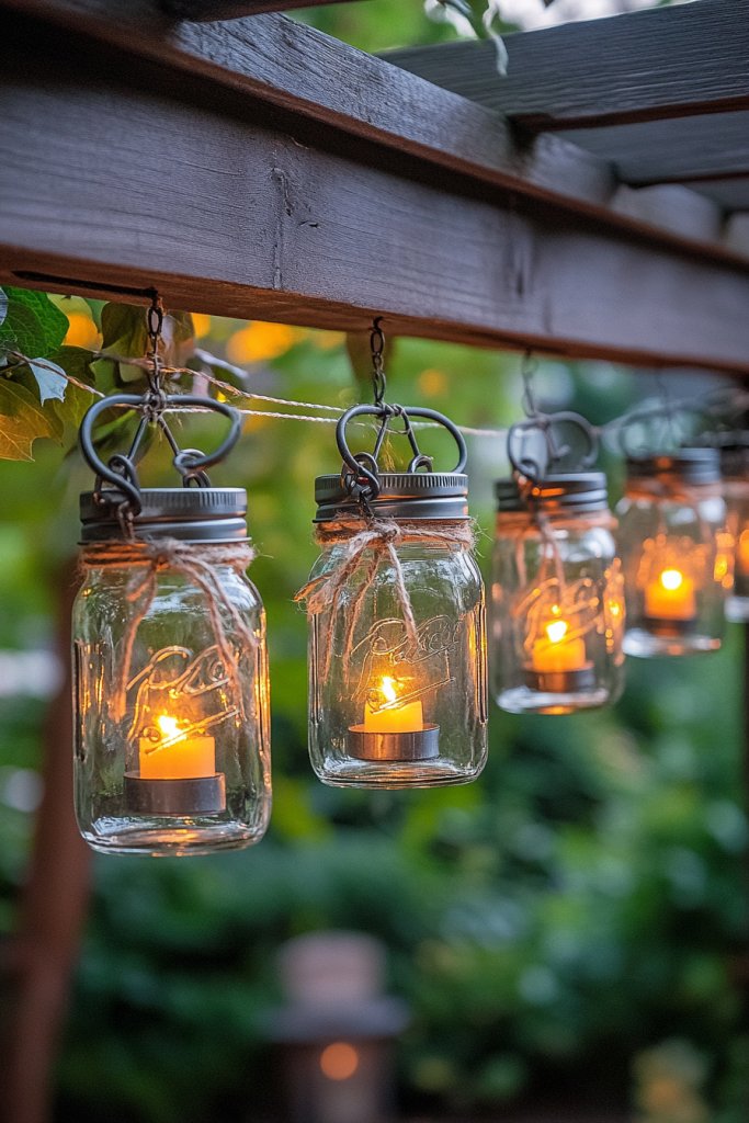 4. Mason Jar Lanterns Hung from Pergolas or Fences