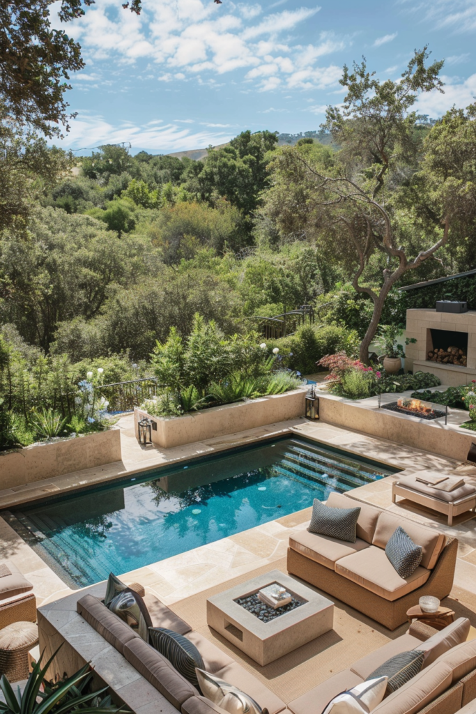 Imagine a cozy fire pit area where the warmth of flickering flames invites you to gather with family and friends under the stars. Surround your fire pit with comfortable seating—think plush cushions and soft blankets that beckon you to sink in and relax. Incorporate natural elements, like stone or rustic wood, to create a welcoming atmosphere that harmonizes with your backyard oasis.