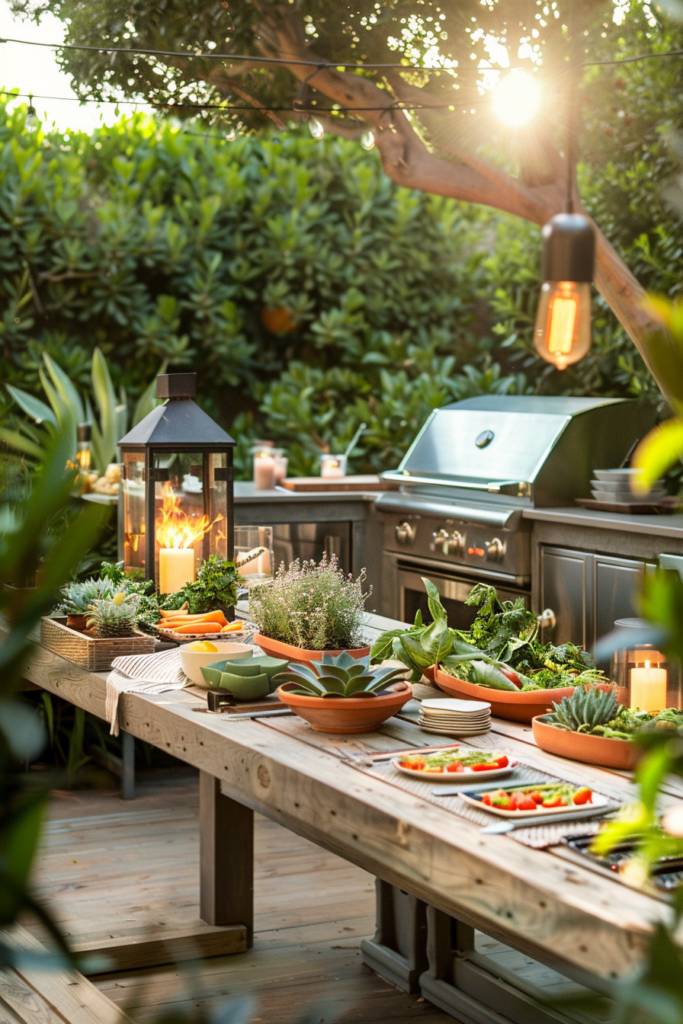 Incorporate a weather-resistant bar cart stocked with grilling essentials—spices, sauces, and utensils. Don’t forget comfortable seating! Colorful cushions on outdoor chairs or a cozy bench encourage relaxation while the aroma of grilling wafts through the air.