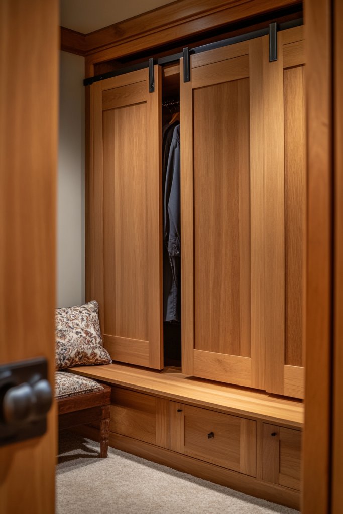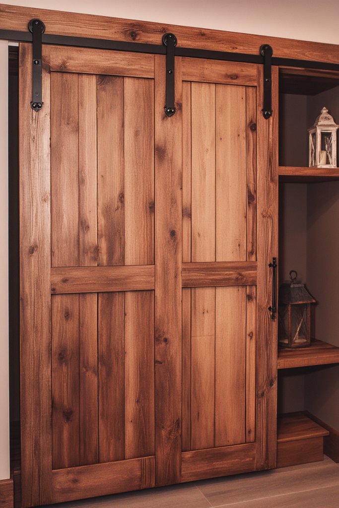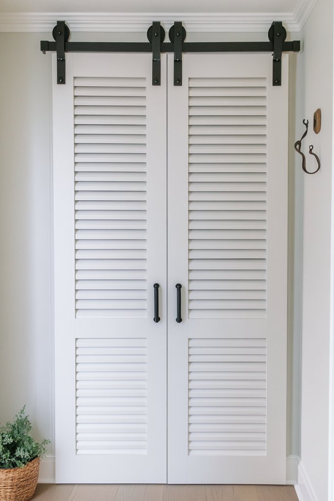 Opt for natural wood for a raw, organic vibe or paint the panels in soft neutrals for a modern twist. Mix with other textured elements like woven baskets or textured paint finishes for a layered look. These doors suit farmhouse, coastal, or rustic decor and can be scaled for small or large closets. Seasonal decor like soft textiles or vintage hardware completes the look.