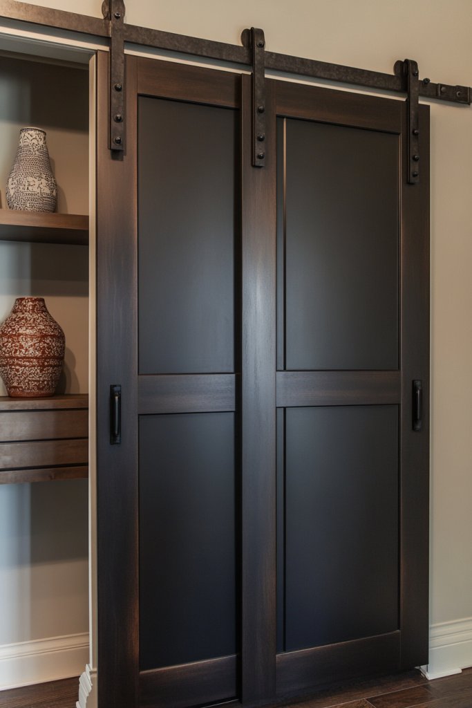 15. Farmhouse-Inspired Sliding Barn Doors with Black Accents