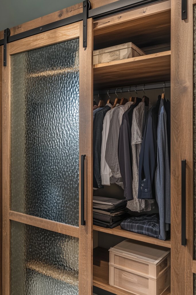 Want to balance privacy with natural light in your closet area? Combining glass and wood creates a textured, transparent look that elevates your space. It allows light to flow while maintaining a degree of concealment. Who says you can’t have it all?