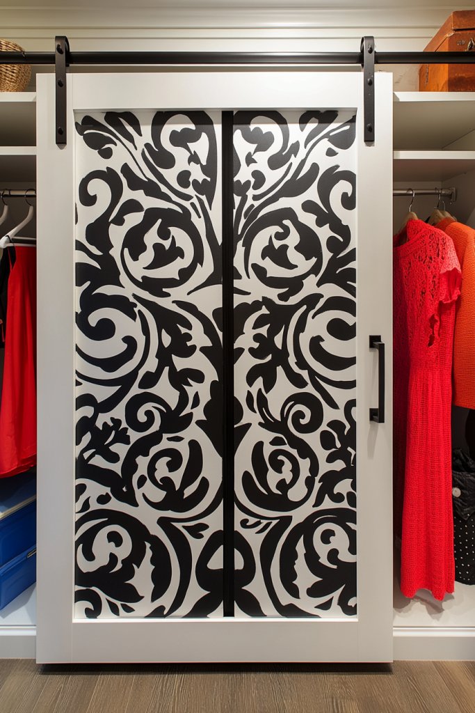 Want your closet doors to stand out as a piece of art? Artistic painted or stenciled barn doors allow you to showcase creativity and personality. They turn a simple functional element into a focal point that reflects your style. Who says closet doors have to be boring?