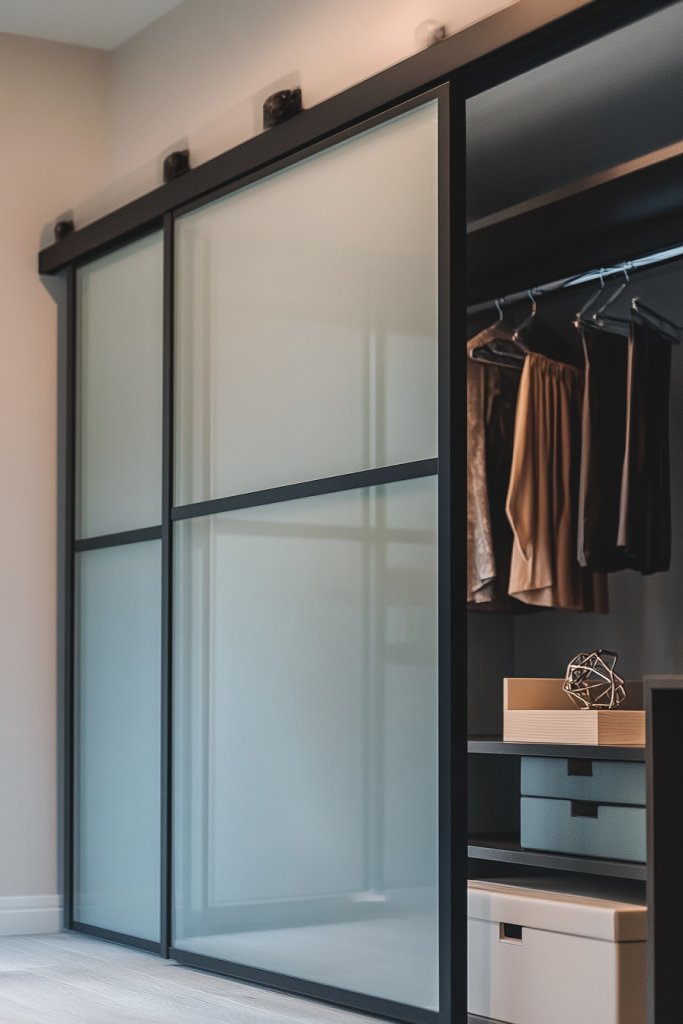 Want a sleek, contemporary look for your closet that feels open and inviting? Sliding glass barn doors combine modern elegance with functionality, perfect for adding a touch of urban chic. They create an illusion of spaciousness while maintaining privacy, making them ideal for open-concept homes or minimalistic decor. Who says practicality can’t be stylish?