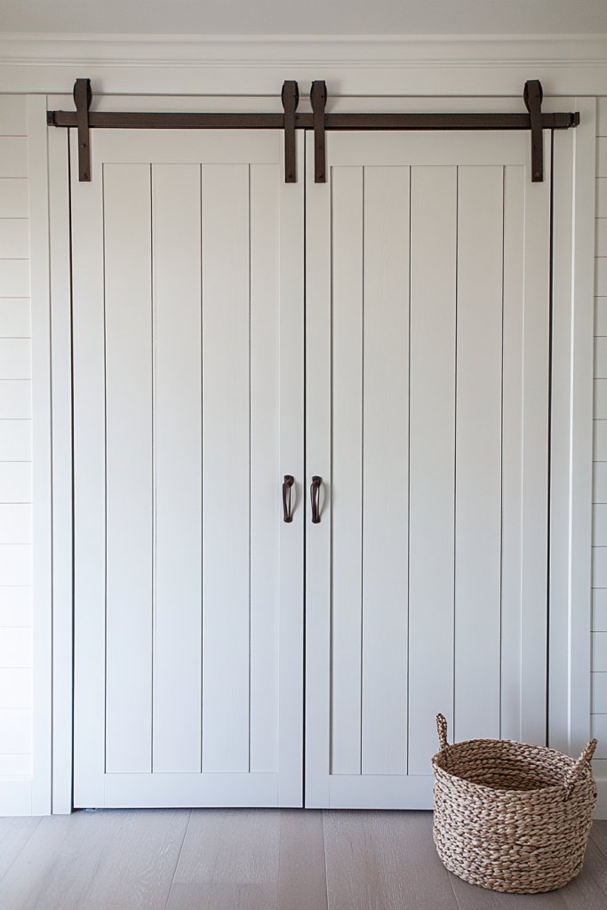 Seeking a way to add subtle texture and visual interest to your closet doors? Vertical shiplap panels deliver a cozy, farmhouse-inspired look that’s both stylish and functional. They break up plain surfaces and bring a handcrafted feel to your space. Who wouldn’t want a touch of rustic charm?