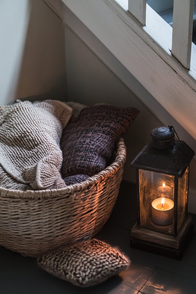 Use baskets of different sizes and shapes for varied storage needs, from small catch-alls to large hampers. Lanterns can be placed on tables, shelves, or hung from hooks for a layered lighting effect. Seasonal swaps, like adding fairy lights or candles inside lanterns, can refresh the look. Stick to neutral tones and natural fibers for a cohesive, rustic aesthetic.