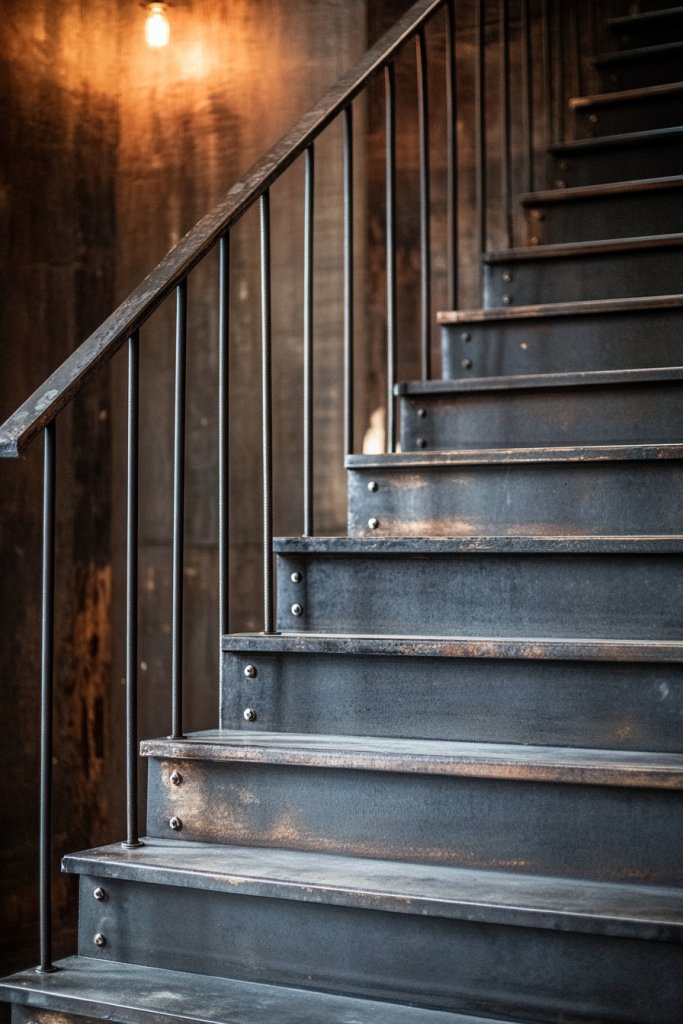 Choose between open or closed riser designs, depending on your space and safety needs. Use different metal finishes—black, brushed steel, or antique bronze—to match your interior. Incorporate wooden handrails for added warmth or keep it all metal for a sleek look. Adapt the design to fit staircases in different rooms, from basements to lofts.