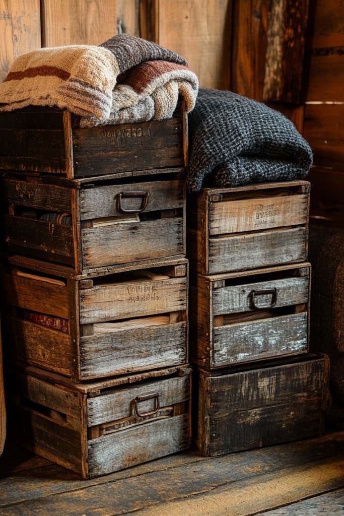 15. Functional Storage Solutions with Vintage Wooden Crates