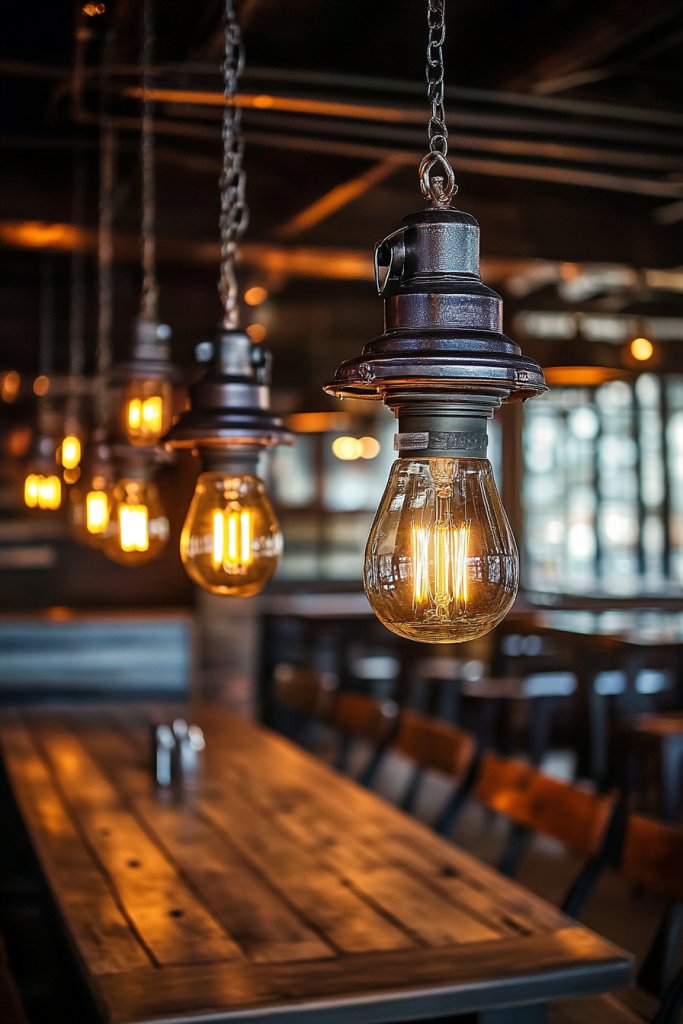 2. Vintage Industrial Lighting Fixtures with Warm Edison Bulbs