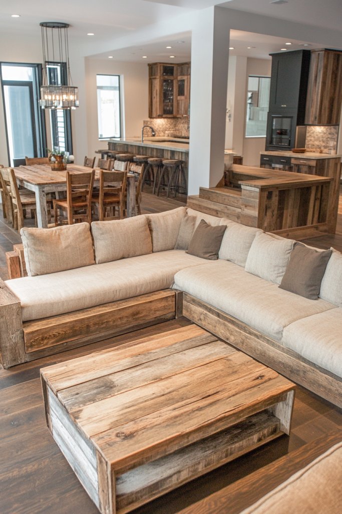 3. Open-Concept Living with Reclaimed Wood Furniture
