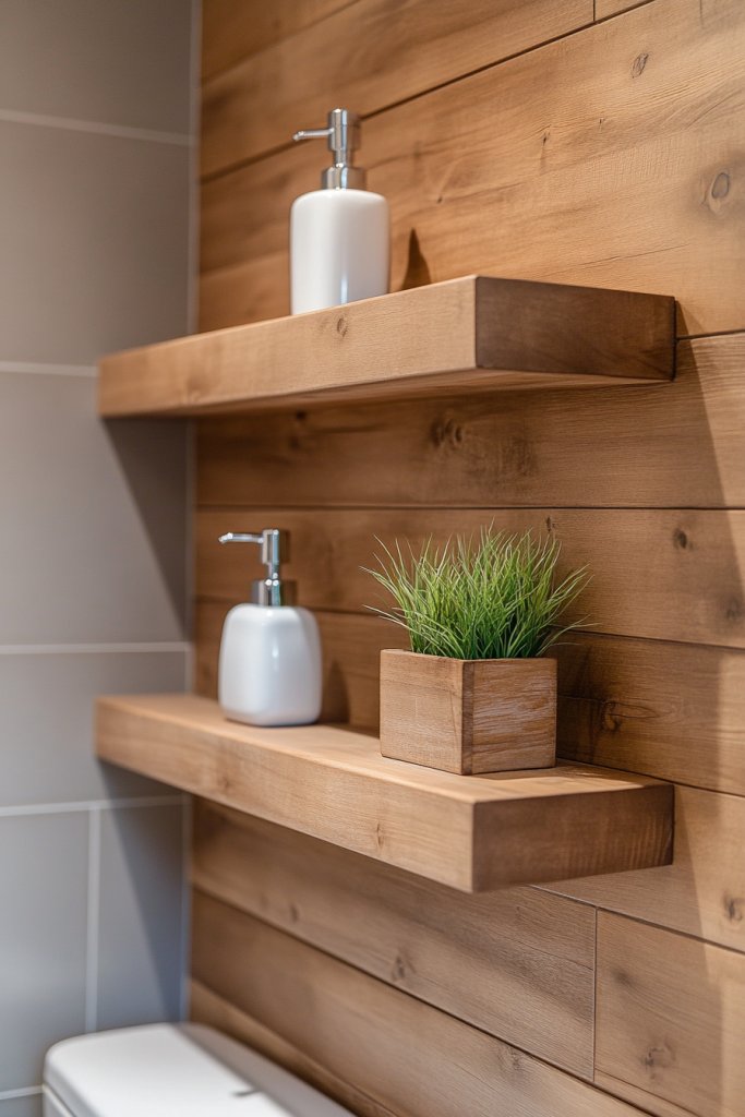 Choose materials that match your decor—natural wood, painted MDF, or even metal for a modern touch. Vary the shelf widths and heights to suit different storage needs. In small bathrooms, keep shelves shallow and minimal to avoid visual clutter. Seasonal styling can include decorative jars, plants (if acceptable), or textured baskets. Incorporate lighting underneath or above the shelves for added ambiance.