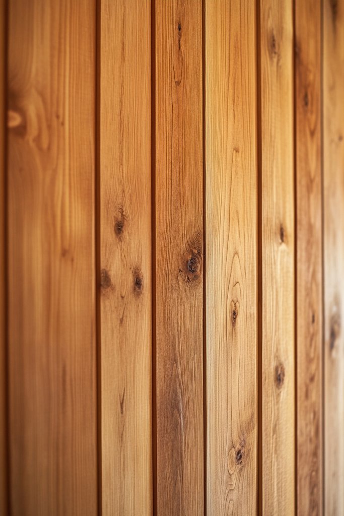 Imagine smooth, flat battens set against a wall painted in a neutral tone, creating subtle shadow lines that define the space. The uniformity of the panels gives a calm, ordered feel, making the room appear larger and more organized. The lack of ornate details emphasizes craftsmanship and quality materials. The overall effect is modern minimalism—quiet, refined, and functional—like a well-tailored suit for your bathroom.