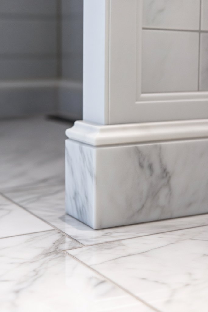 Imagine narrow marble strips with contrasting veining that frame your mirror or run along the edges of your tiled walls. The polished surface catches light and highlights the craftsmanship. When you glance at these borders, you notice the subtle sophistication they add, elevating the overall aesthetic. It’s like the jewelry for your bathroom.
