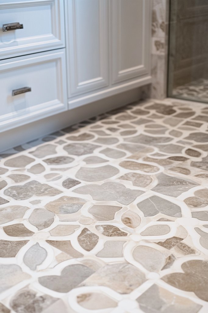 Tired of plain, boring bathroom floors? Want to add instant character without overwhelming the space? Patterned marble tiles are your answer—they bring texture, depth, and a touch of artistry to your bathroom floor. It’s like wearing a statement piece that elevates your entire look.