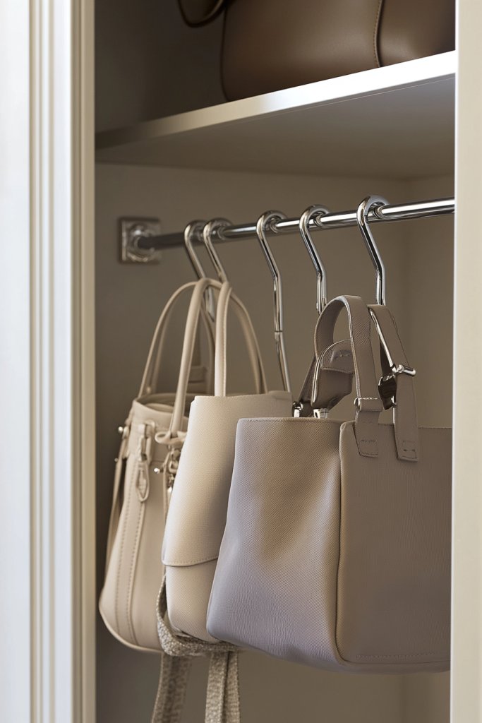 Want to streamline your accessories? This is your solution. Visualize a set of sturdy hooks and racks mounted on the inside of your closet or bedroom door.