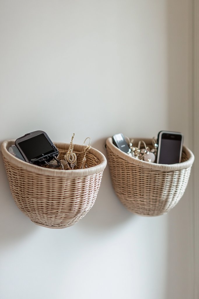 Incorporate small hooks inside baskets for earrings or keys. Use color-coordinated baskets to match your room’s palette.