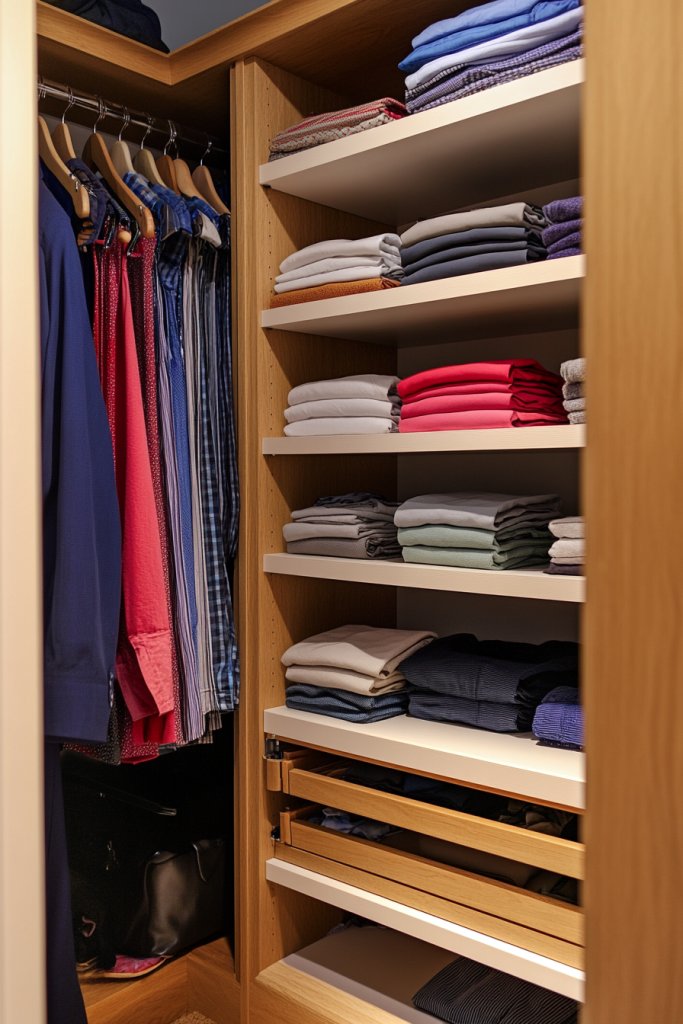 Incorporate jewelry drawers or belt racks for added convenience. Consult a professional or DIY with modular units from home improvement stores.