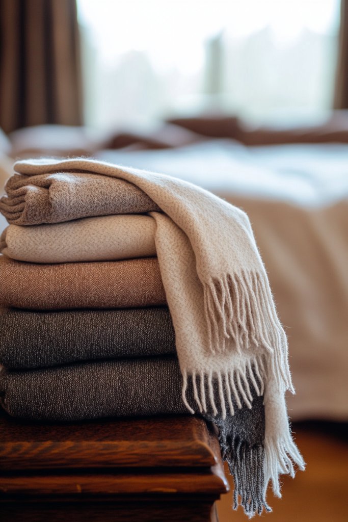 Change the fabric seasonally—think heavier knits in winter and lighter linens in summer. Drape it loosely or fold it neatly for different effects.