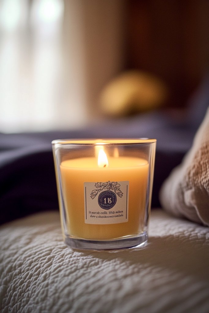 Its warm flickering flame casts gentle shadows, making your bedside feel inviting and peaceful. The scent wafts softly, filling the room with calming notes like lavender, vanilla, or sandalwood.
