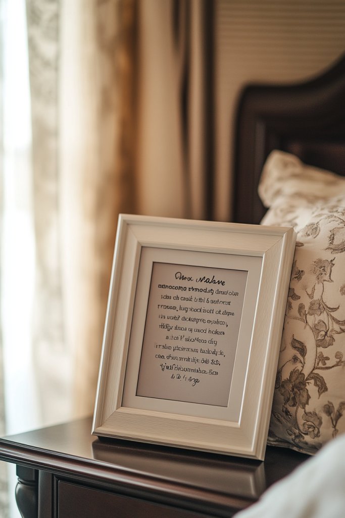 Want to add a personal touch to your bedside without cluttering your space? A framed quote or photo can inject motivation and warmth directly onto your nightstand. But how do you keep it stylish and clutter-free? Picture a small, elegant frame with a favorite quote in beautiful typography or a cherished photo of loved ones.