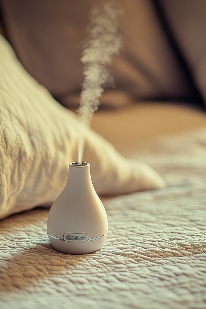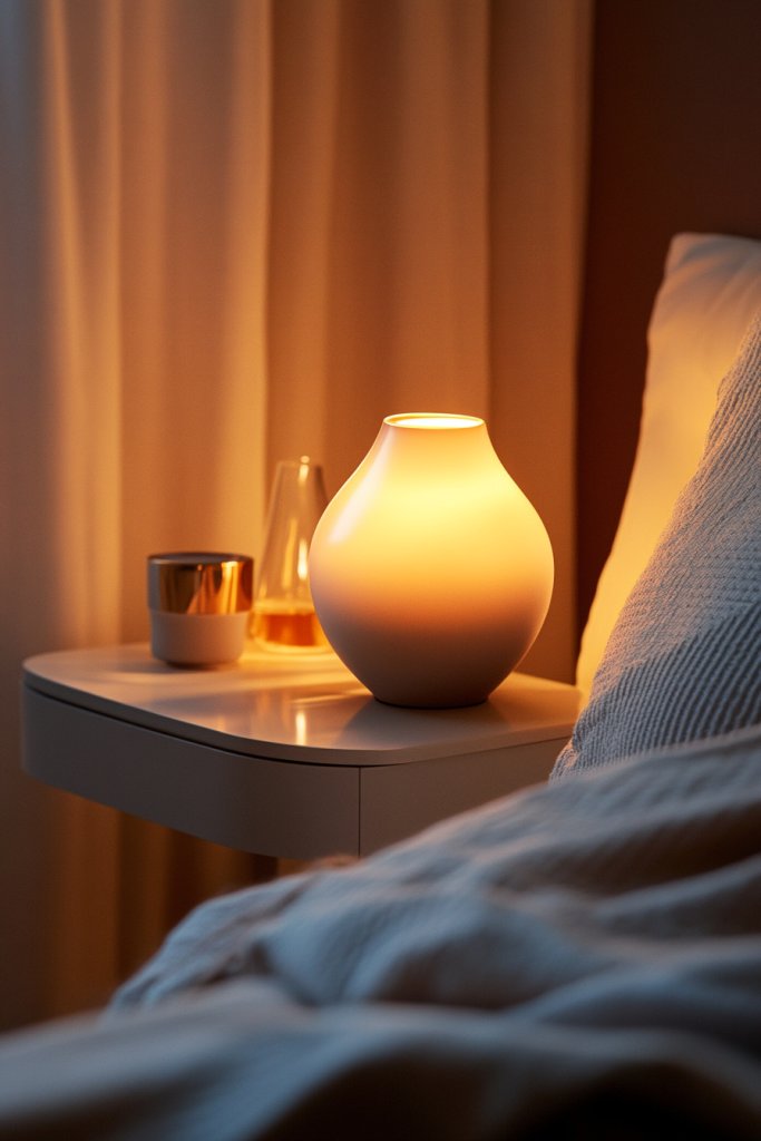 Use different essential oils for various effects—lavender for sleep, eucalyptus for clarity. Place the diffuser on a decorative tray or directly on your bedside surface.