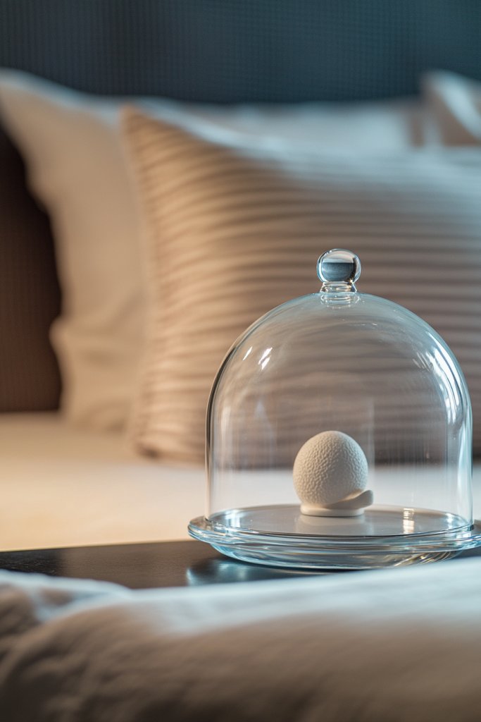 A glass cloche adds an elegant layer of sophistication without overwhelming your space. It’s a simple yet impactful way to showcase your personality and style. With just a little effort, your bedside becomes a curated mini-gallery that’s both charming and inspiring.