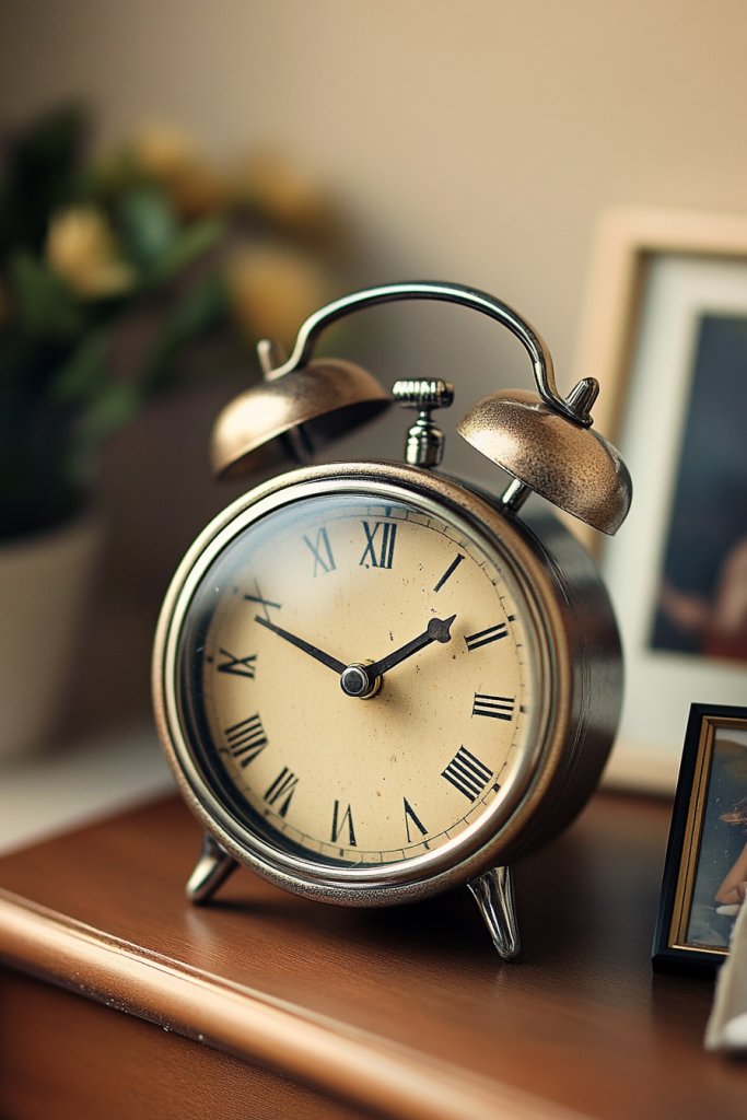 6. Vintage-Style Alarm Clock with Minimalist Decor