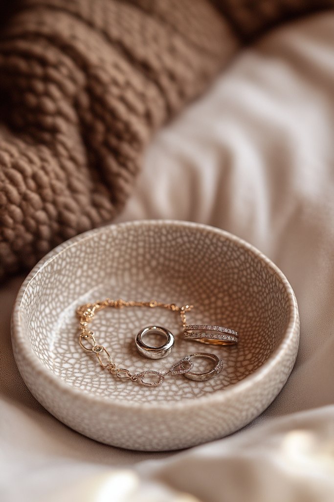 Fill them with seasonal items like pinecones or shells, or keep a consistent theme with miniature figurines or floral arrangements (using faux botanicals to avoid restricted content). Place them on trays, small tables, or directly on the nightstand.