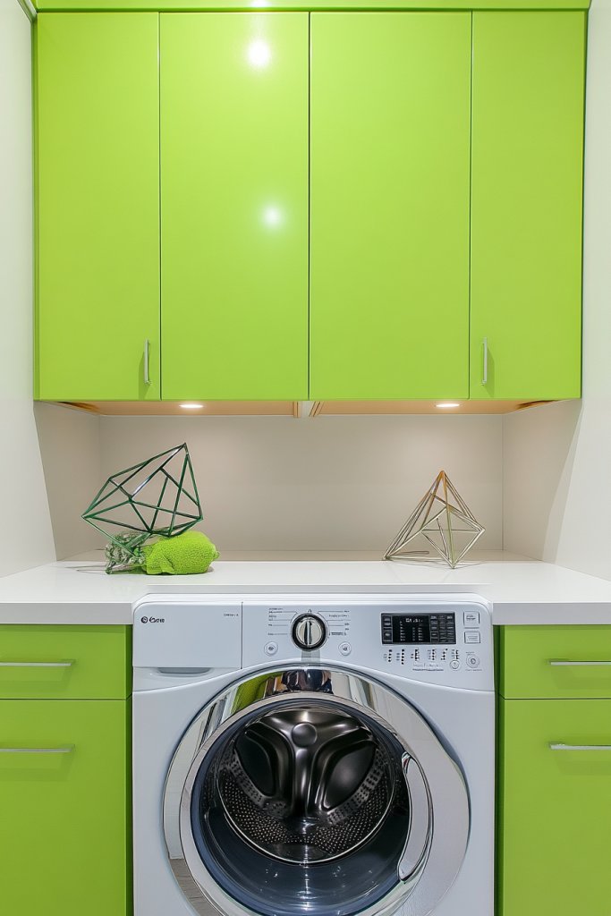 Want your laundry room to scream personality? Chartreuse or lime green is the ultimate bold choice that guarantees your space stands out. It’s perfect for energetic, modern homes where a splash of color makes a statement. Why settle for dull when you can go vibrant?