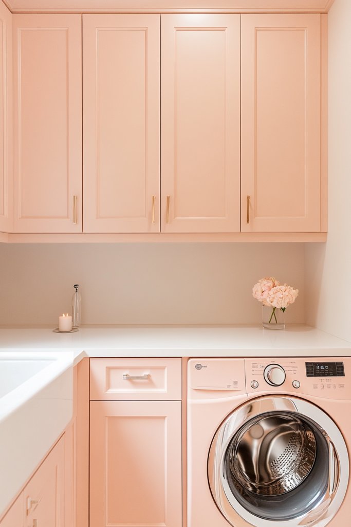 Pale peach and blush hues turn an ordinary laundry room into a warm, inviting retreat. They evoke a sense of softness and comfort, perfect for making chores feel less like a task and more like a treat. Once transformed, your laundry space will radiate personality and charm—proof that gentle shades work wonders.