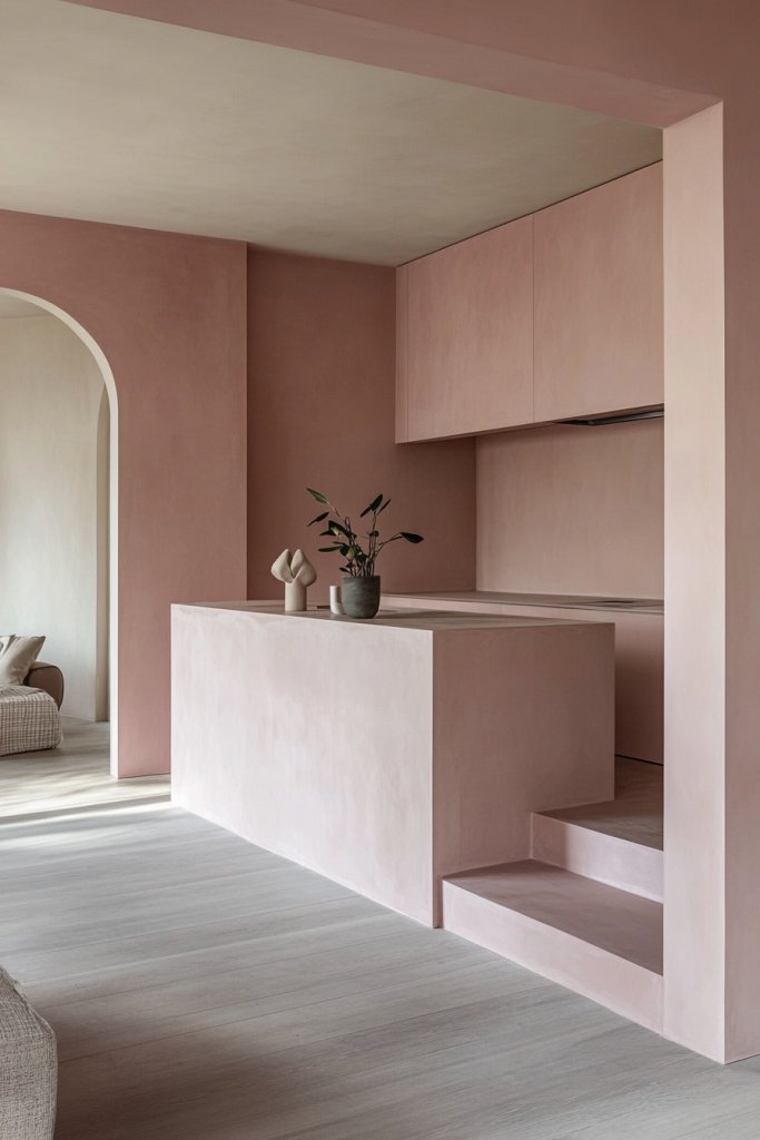18. Subtle Blush in Open-Plan Kitchens and Living Areas