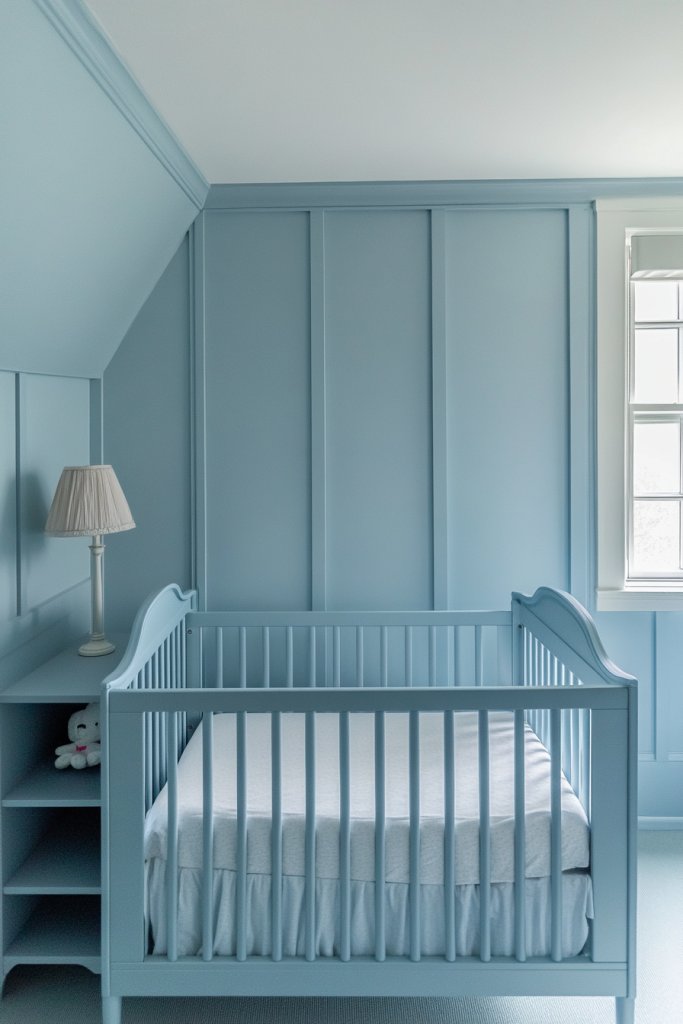 Want a nursery that reads traditional but with a luxurious twist? Wide board and batten combined with decorative molding instantly elevates the space. It adds a sense of grandeur without overwhelming the room. Ideal for parents who love classic elegance with a bit of flair.