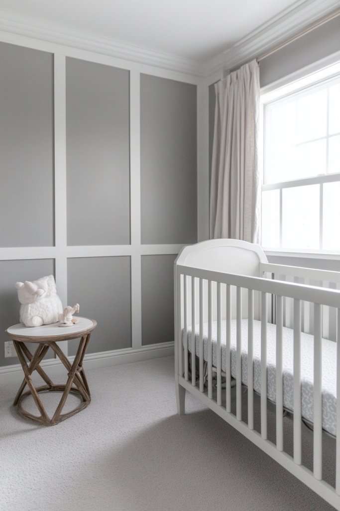 Choose decorative moldings in contrasting colors or finish them with metallic or antique paint for a luxe touch. Use wide battens in darker stains or painted shades to create bold contrasts. For a more modern take, opt for clean lines and minimal molding. The style adapts well to transitional nursery themes.