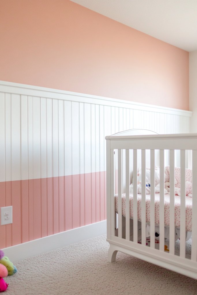 Looking to add some personality to your nursery without overwhelming the space? Two-tone board and batten is a fantastic way to make a statement while still keeping things cozy. The contrast between the crisp white battens and a bold upper wall color creates a striking visual impact. It’s perfect for parents who want a little drama with their charm.