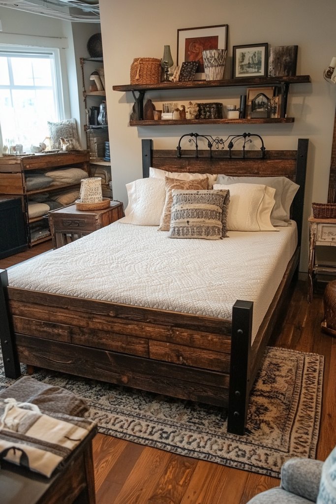 Choose from sleek metal frames for a modern touch or distressed wood for a more rustic look. Incorporate a canopy or a simple headboard with decorative carvings for added flair. For smaller rooms, a platform style maximizes space, while larger bedrooms can handle a more elaborate design. Seasonal bedding swaps keep the look fresh and aligned with your mood.