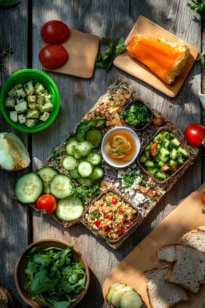 Use vibrant seasonal produce—tomatoes, peppers, berries—and incorporate homemade plant-based cheeses and spreads. Switch to compostable or biodegradable serving ware for a more eco-friendly setup. For added rustic charm, include woven baskets or fabric wraps made from natural fibers. For winter, focus on root vegetables and hearty grains. In warmer months, add chilled salads or fruit skewers. The key is to combine functionality with eco-consciousness.