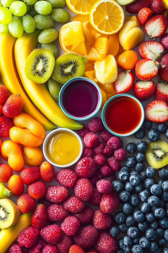 4. Bright and Bold Color Palette with Rainbow Fruits and Bright Condiments